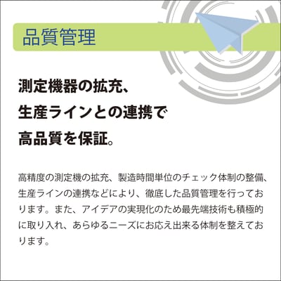 「安定製造技術」「精密加工技術」「計測技術」の3つの技術を有機的に連携することにより、高精度・高品質な製品の生産に努めています。